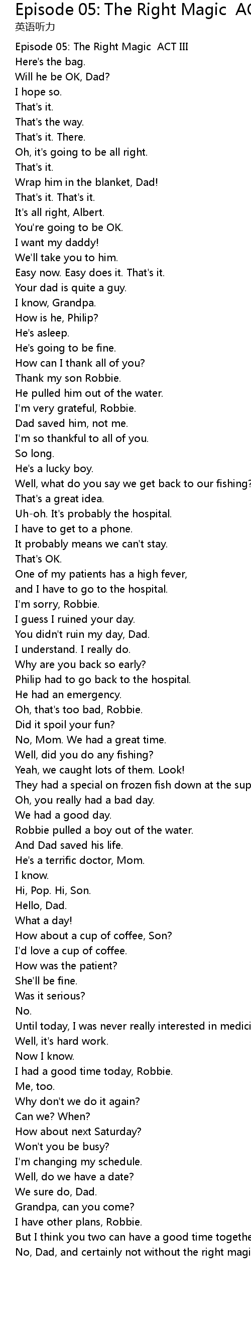 | [00:00.01] | Episode 05: The Right Magic ACT III |