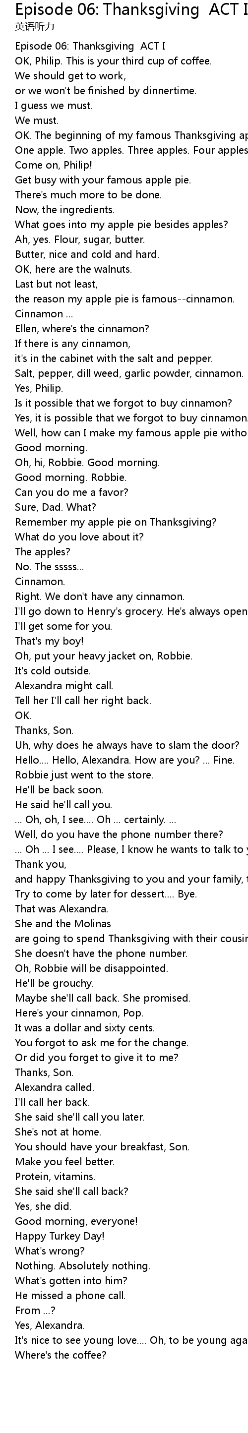 | [00:00.01] | Episode 06: Thanksgiving ACT I |