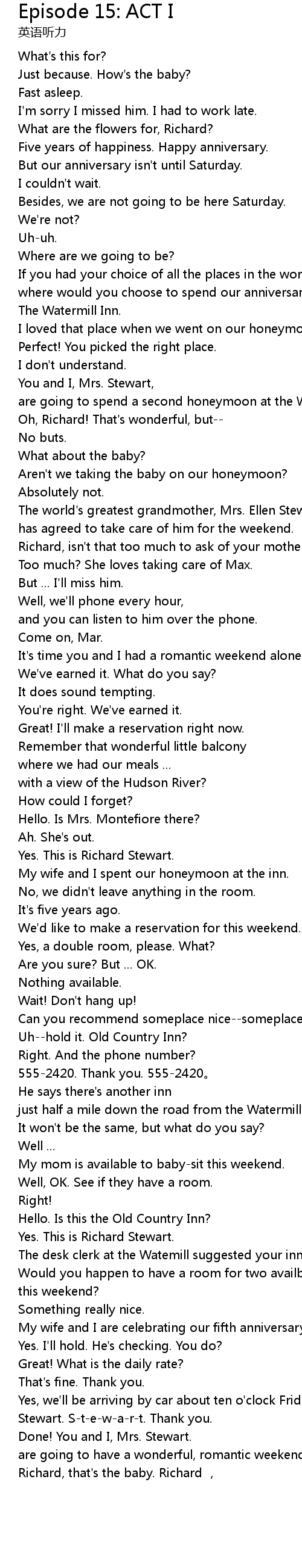 | [00:49.27] | are going to spend a second honeymoon at the Watermill Inn. |