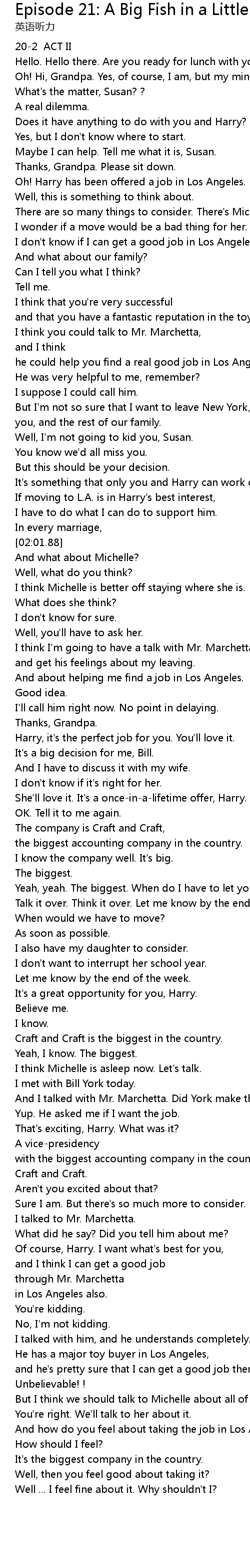 | [00:41.98] | Oh! Harry has been offered a job in Los Angeles. |