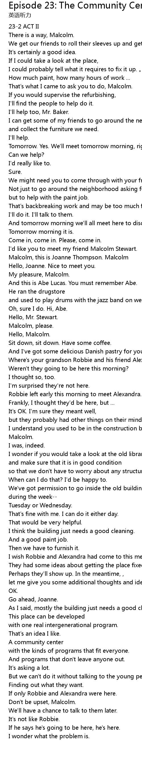 | [00:21.72] | That' s what I came to ask you to do, Malcolm. |