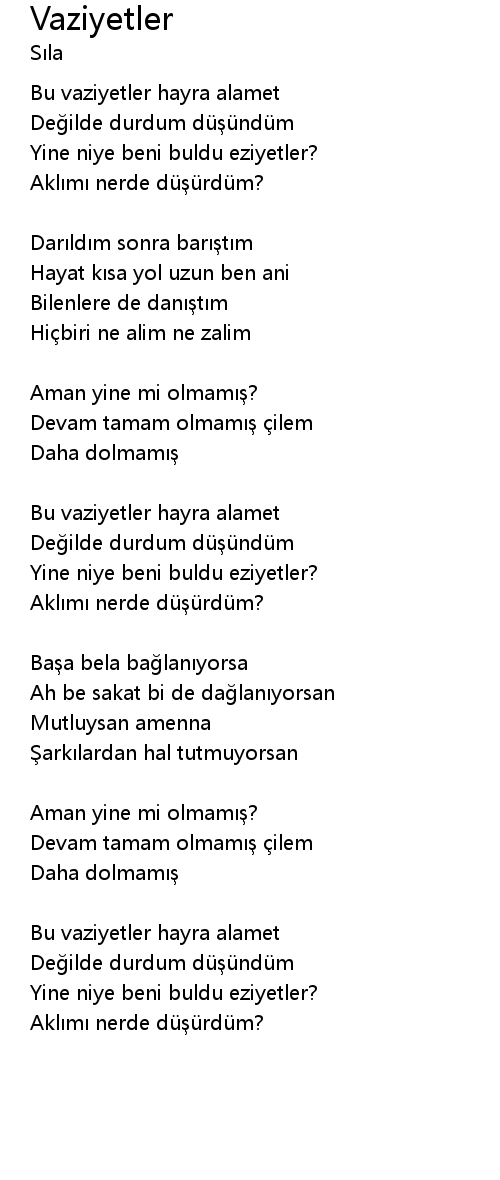 | Yine niye beni buldu eziyetler? | |
