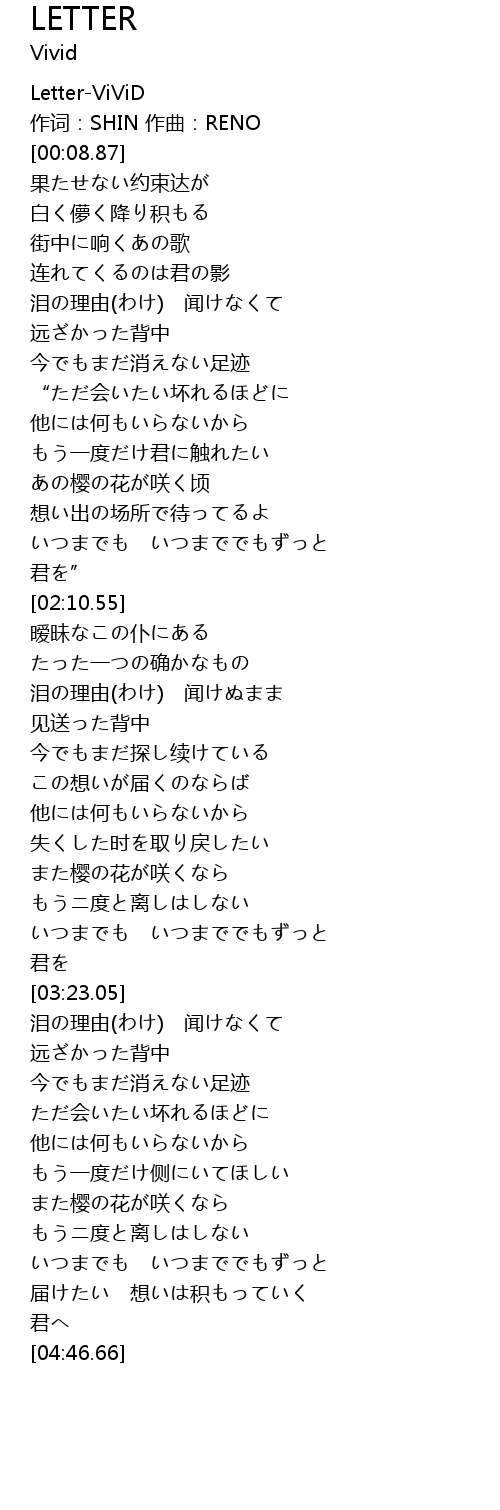 | [02:36.90] | 泪の理由(わけ) 闻けぬまま |