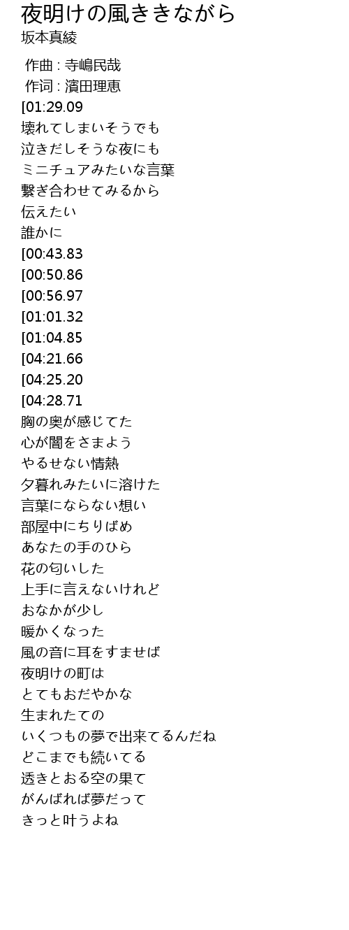 | [03:01.12] | 風の音に耳をすませば |