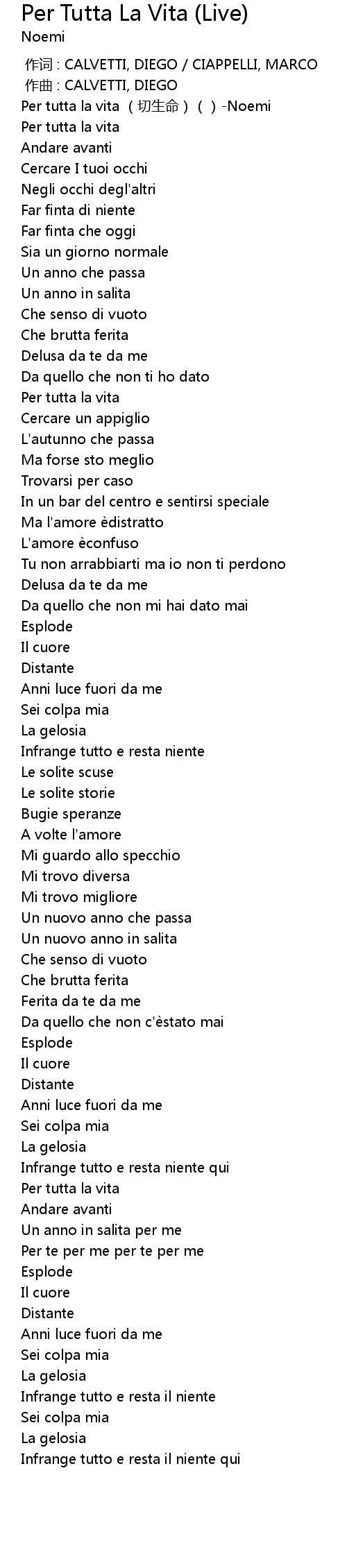 | [00:00.00] | Per tutta la vita qiè shēng mìng Noemi |