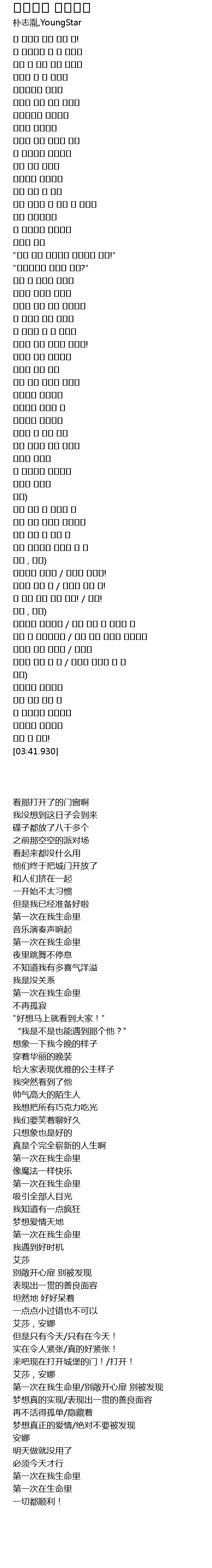 | [02:57.440] | 태어나서 처음으로 / 마음 열지 마 들키지 마 |