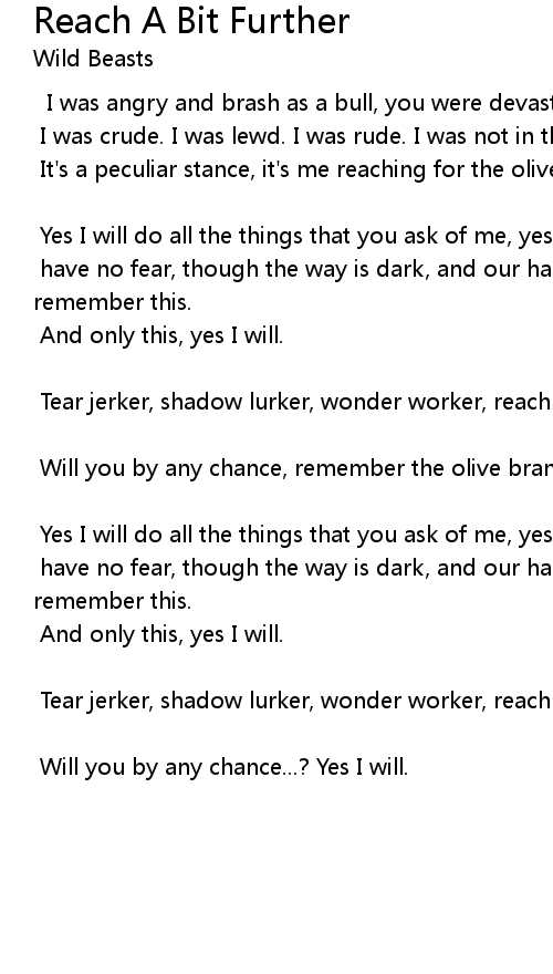 Tear jerker, shadow lurker, wonder worker, reach a bit further |