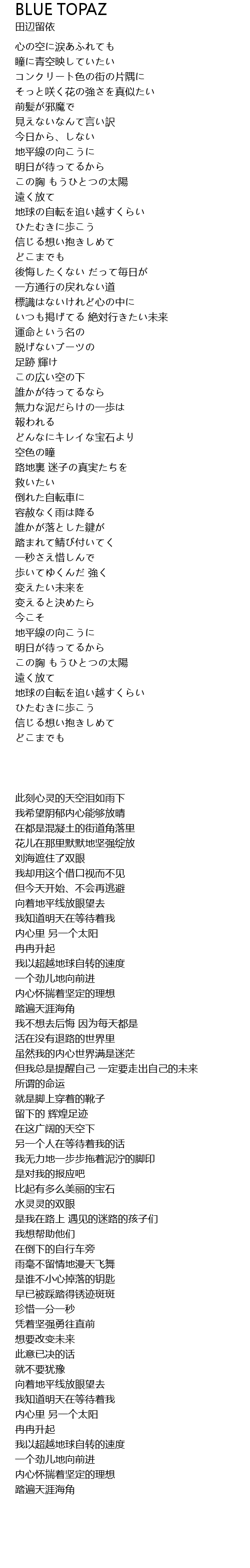 | Song | BLUE TOPAZ |