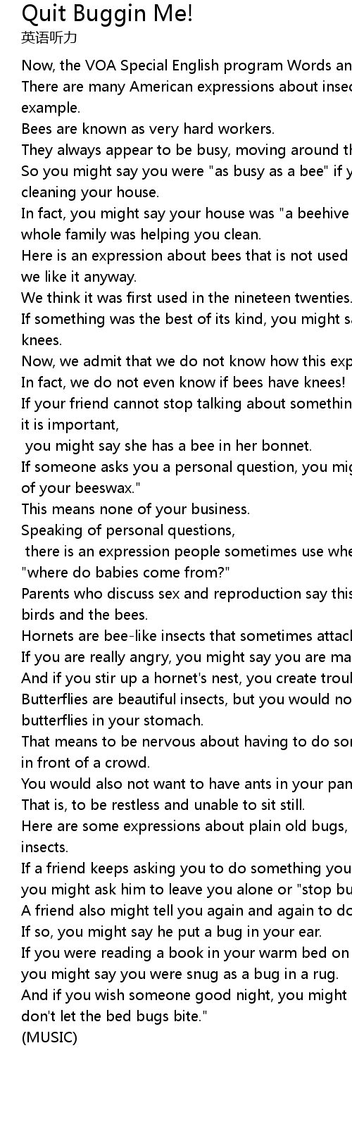 There are many American expressions about insects -- like bees, for example. |