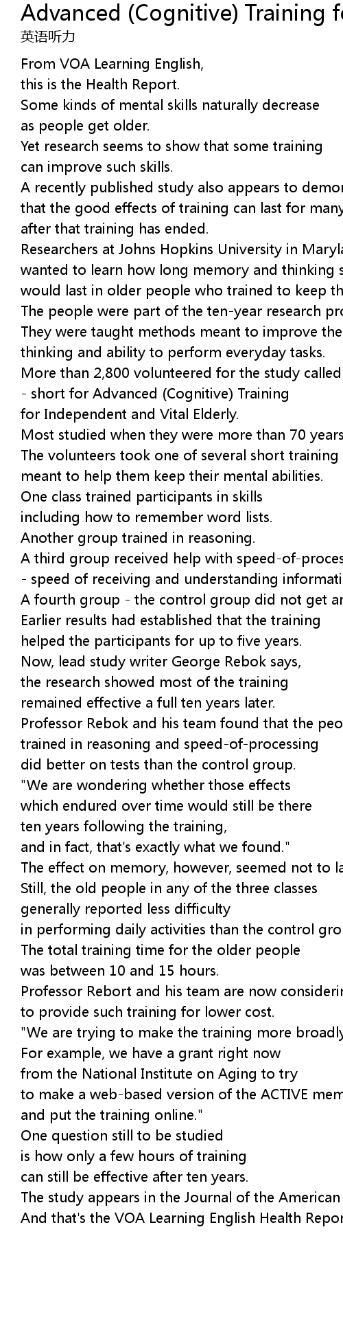 Advanced (Cognitive) Training for Independent and Vital Elderly Lyrics