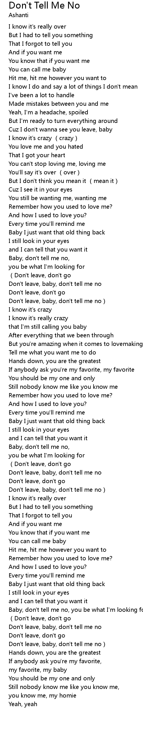 | Baby, don' t tell me no, you be what I' m looking for | |