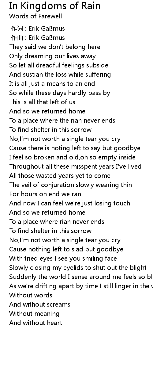 | Song | In Kingdoms of Rain |