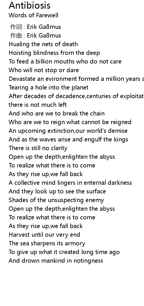 | [01:56.456] | An upcoming extinction, our world' s demise |