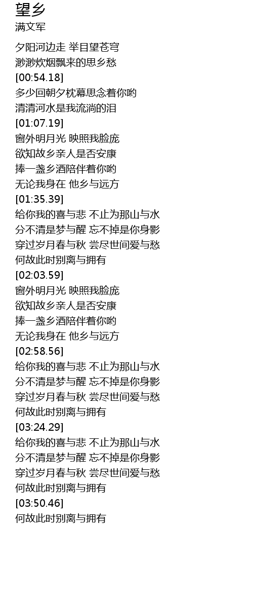 | [00:47.42] | 渺渺炊烟飘来的思乡愁 |