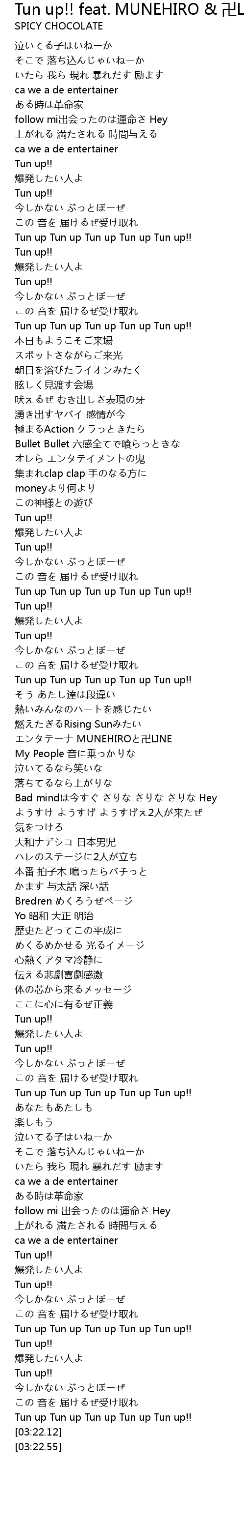 | [03:18.68] | Tun up Tun up Tun up Tun up Tun up!! |