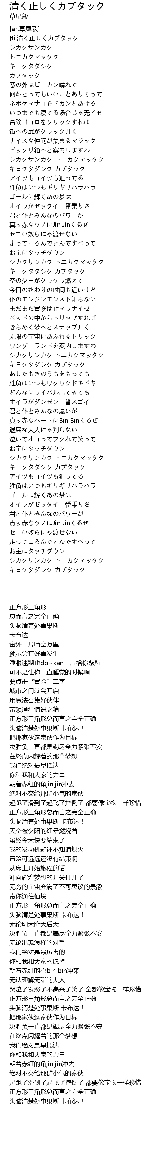 | [ti:清く正しくカブタック] | |