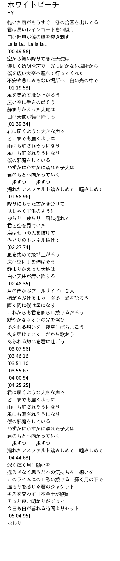 | [04:20.07][04:00.54][03:40.92] | 白い天使が舞い降りる |