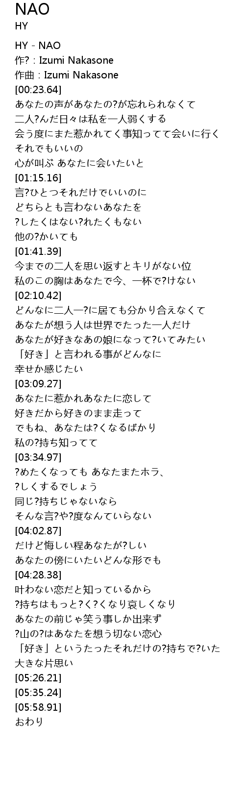 | [00:19.64] | zuò qǔ: Izumi Nakasone |