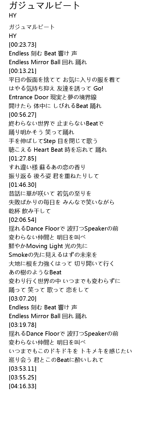 | [00:56.54] | 終わらない世界で 止まらないBeatで |