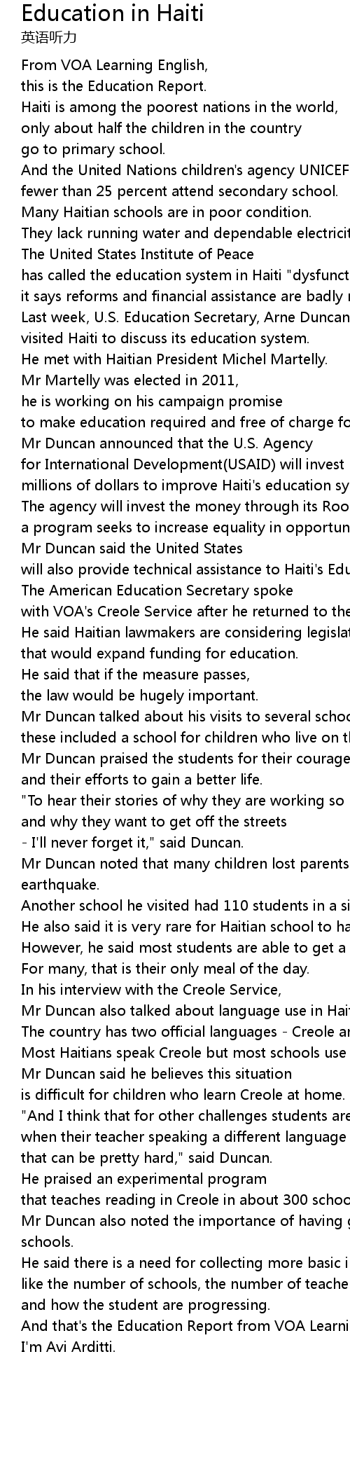 [02:54.27] Mr Duncan also talked about language use in Haitian schools.