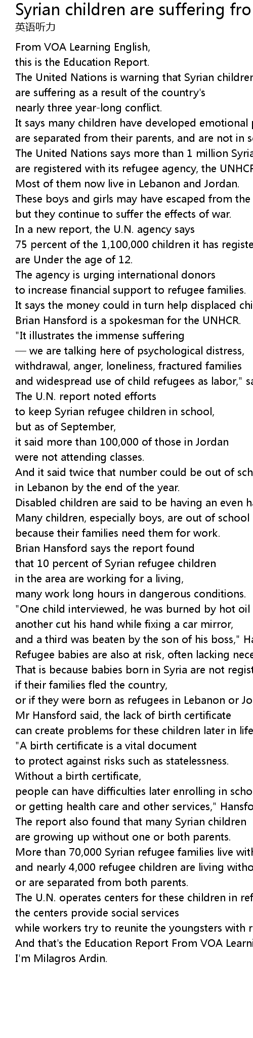 | [00:25.96] | The United Nations says more than 1 million Syrian children |