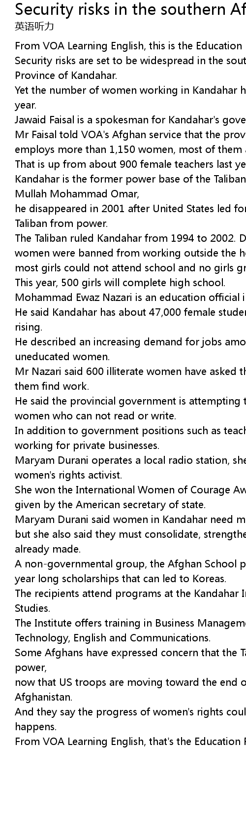 He said Kandahar has about 47,000 female students and the numbers are rising. |