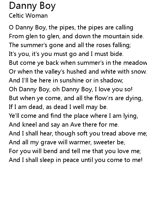 Oh Danny Boy, oh Danny Boy, I love you so! |