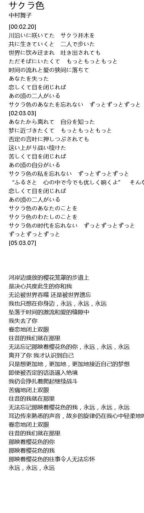 | [03:07.62] | サクラ色の私を忘れない ずっとずっとずっと |