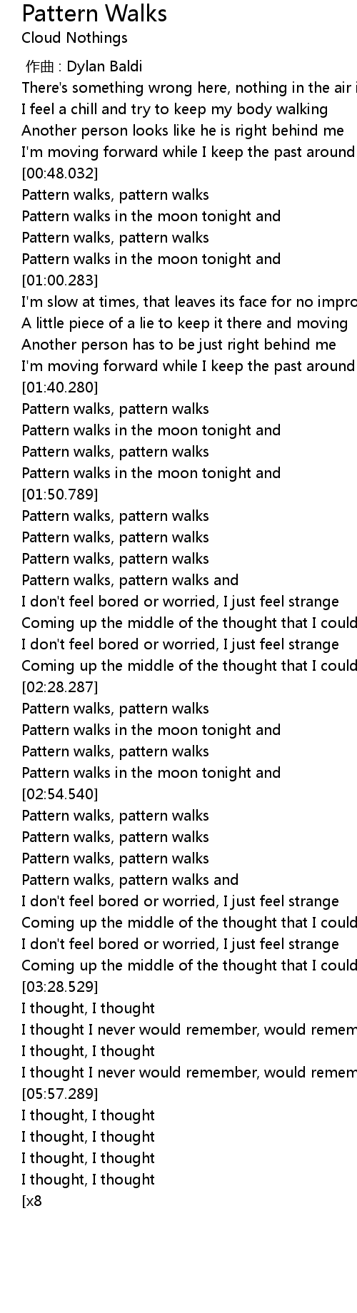 | [01:51.287] | Pattern walks, pattern walks |