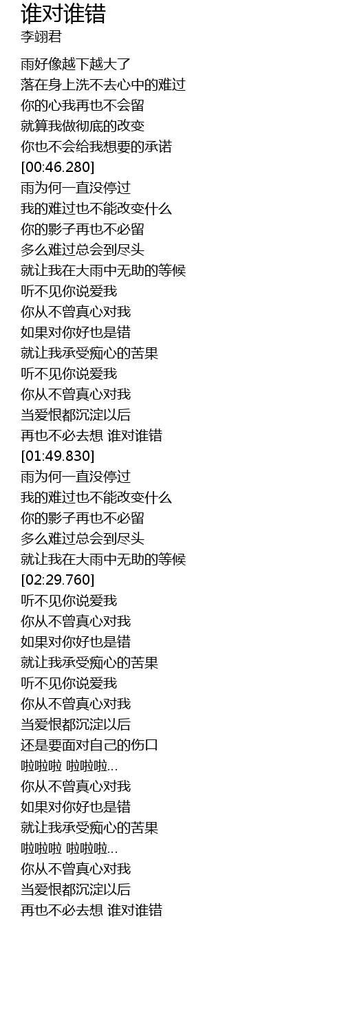 | [01:42.610] | zài yě bù bì qù xiǎng shuí duì shuí cuò |