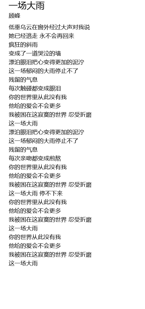 | [02:42.63] | 这一场郁闷的大雨停止不了 |