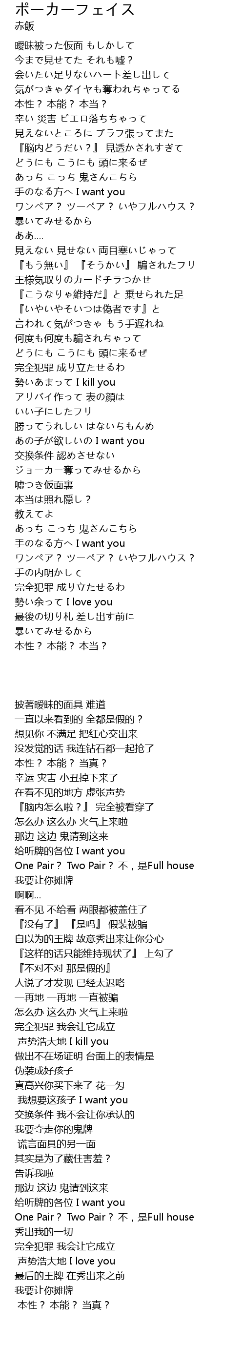 | [01:07.69] | ワンペア? ツーペア? いやフルハウス? |