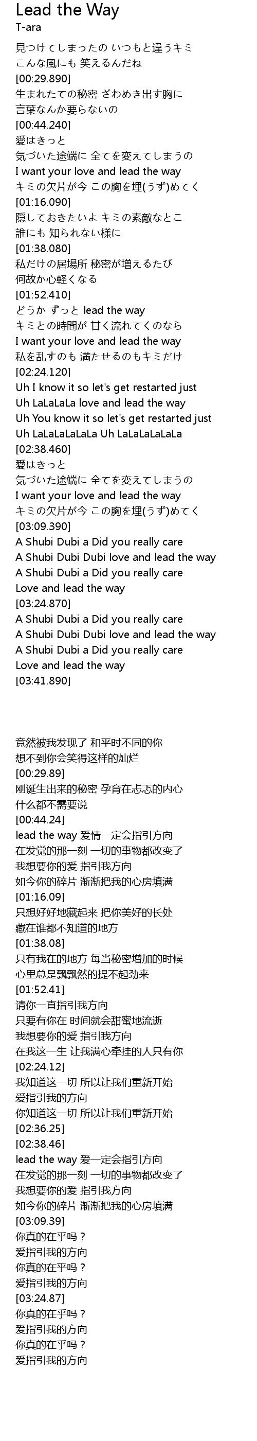 | [03:14.380] | A Shubi Dubi Dubi love and lead the way |