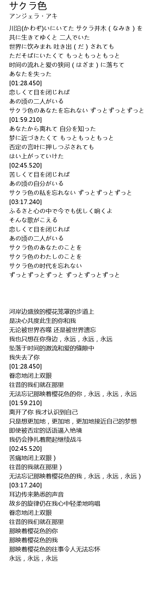 | [01:42.870] | サクラ色のあなたを忘れない ずっとずっとずっと |