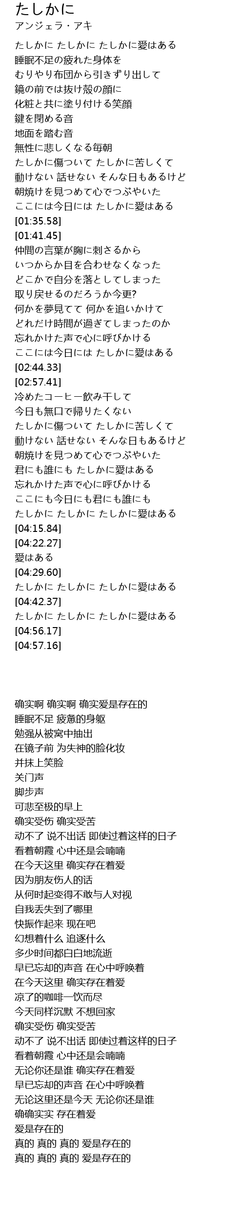 | [04:35.45] | たしかに たしかに たしかに愛はある |