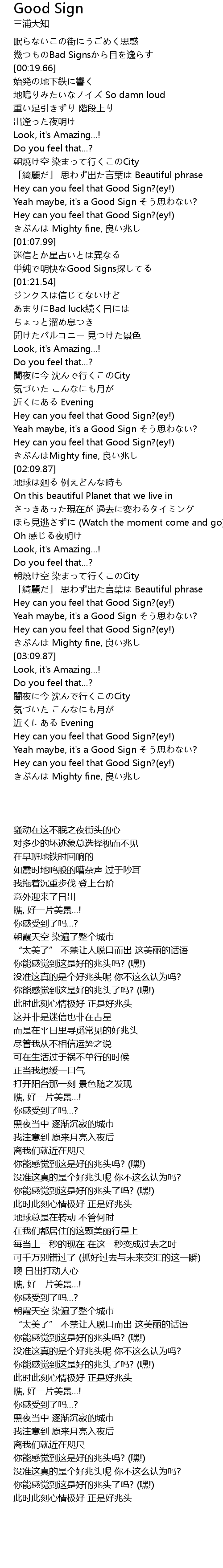 | [03:02.51] | Hey can you feel that Good Sign?(ey!) |