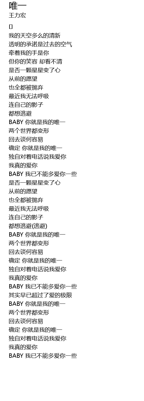 | [03:30.7] | BABY nǐ jiù shì wǒ de wéi yī |