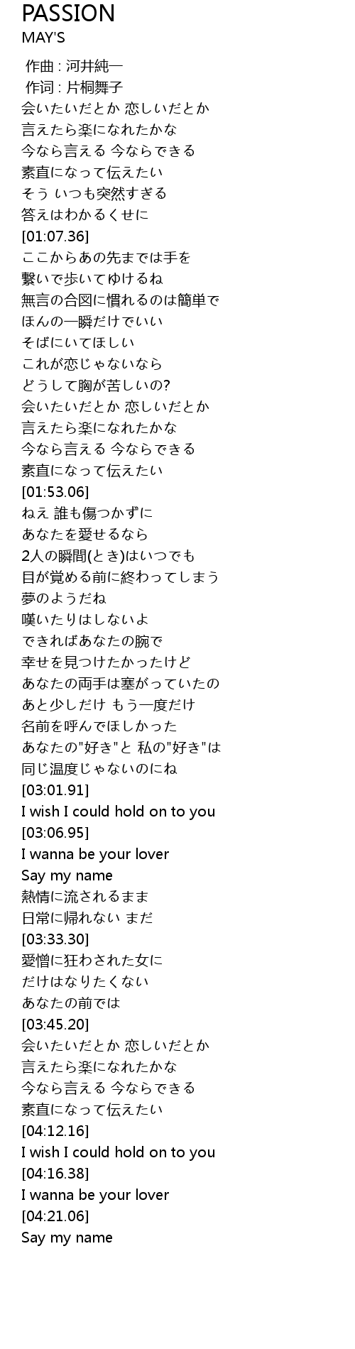 | [04:18.69] | I wanna be your lover |