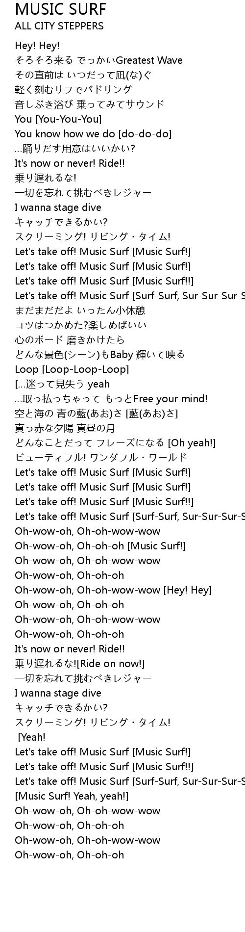 | Let's take off! Music Surf [Music Surf!] [Yeah!] | |