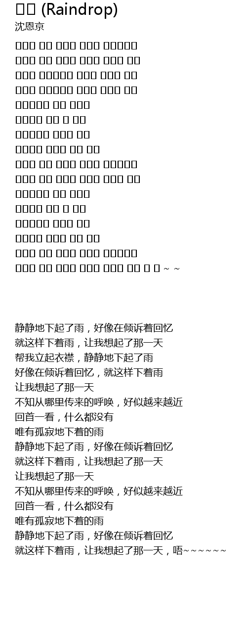 | [02:19.100] | 쓸쓸하게 내리는 빗물 빗물 |