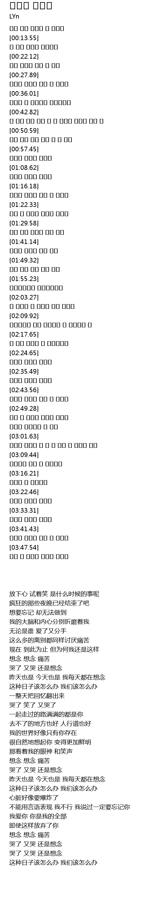 | [00:22.30] | 잊고 싶은데 그게 잘 안돼 |