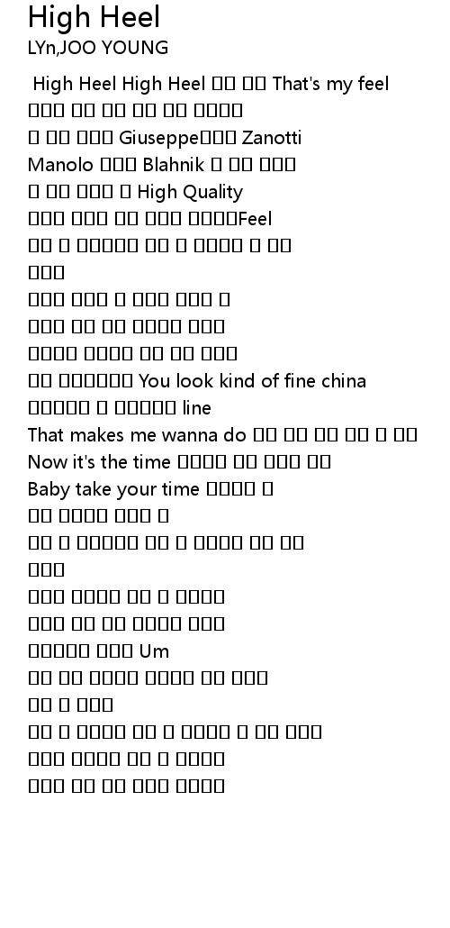 | [00:17.56] | High Heel High Heel That' s my feel |