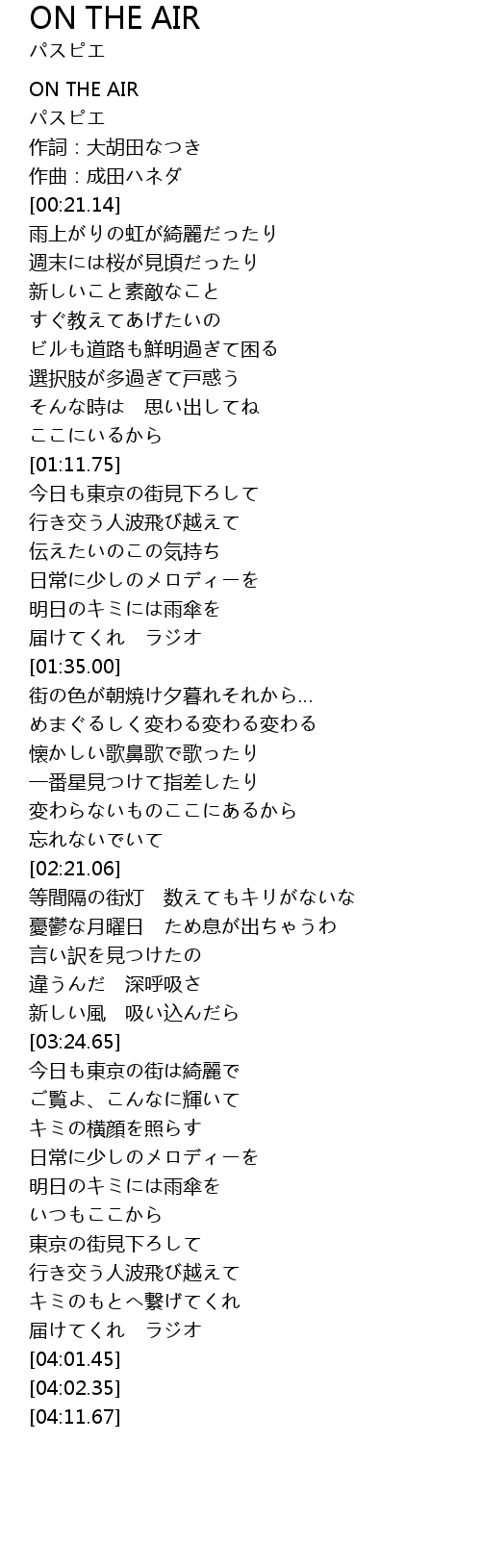 | [00:00.00] | ON THE AIR |