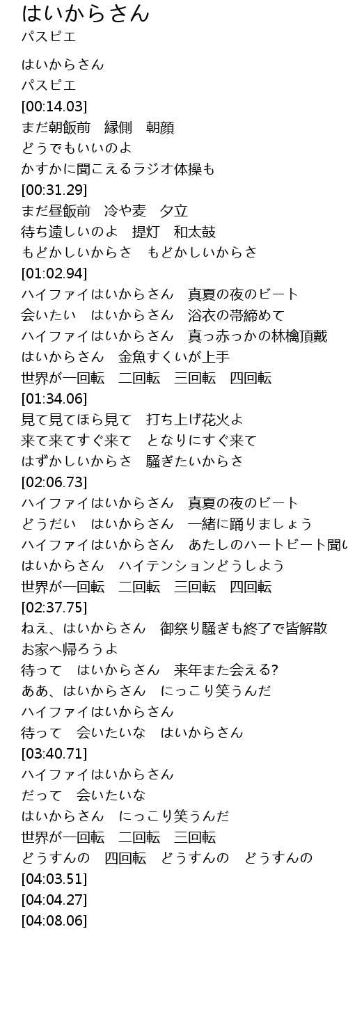 | [03:35.22] | 待って 会いたいな はいからさん |