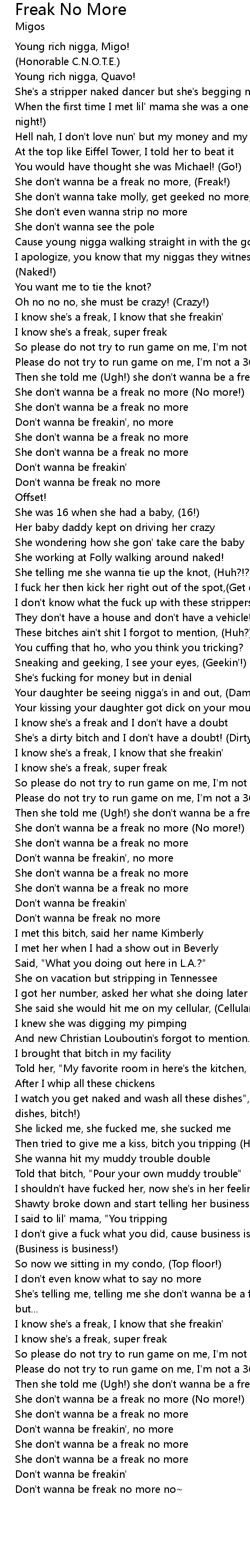 [01:52.90] Then she told me (Ugh!) she don't wanna be a freak no more