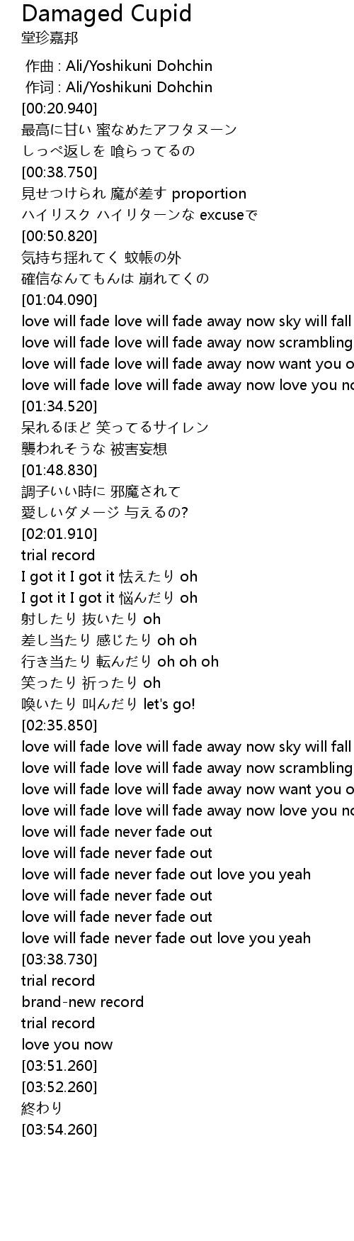 | [02:54.310] | love will fade love will fade away now scrambling squall |