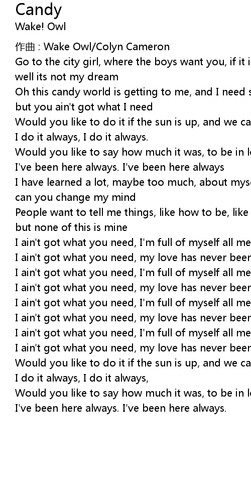 | Oh this candy world is getting to me, and I need someone, | |