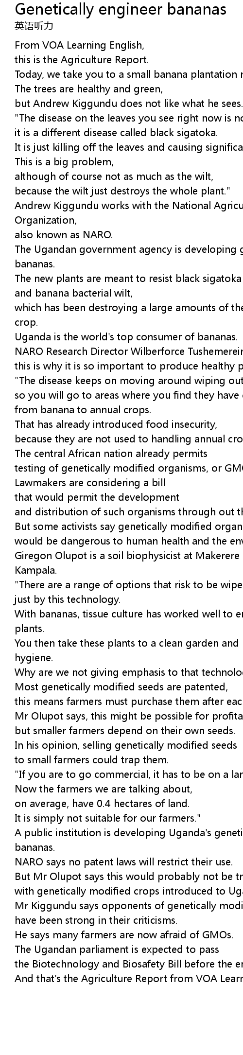 With bananas, tissue culture has worked well to engineer healthy plants. |