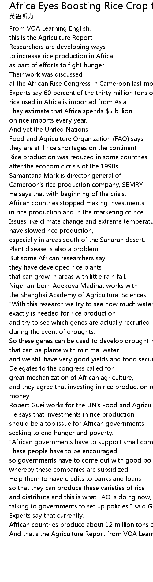 Africa Eyes Boosting Rice Crop to Fight Hunger Lyrics