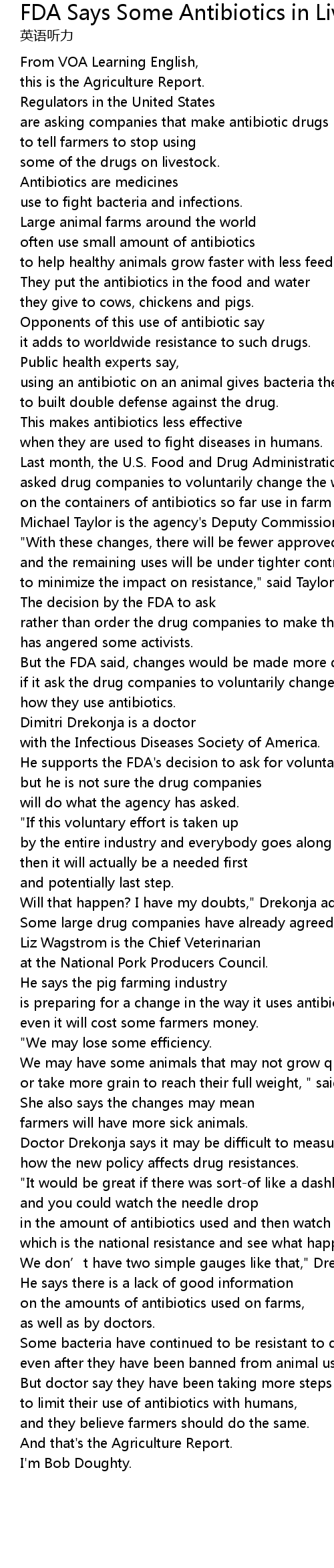 | Song | FDA Says Some Antibiotics in Livestock Will Be Limited |